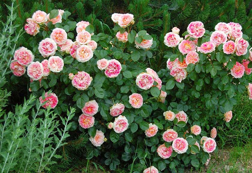 - С хвойными: Контраст нежных цветков и строгой зелени хвойных пород создает элегантные и круглогодично декоративные композиции.